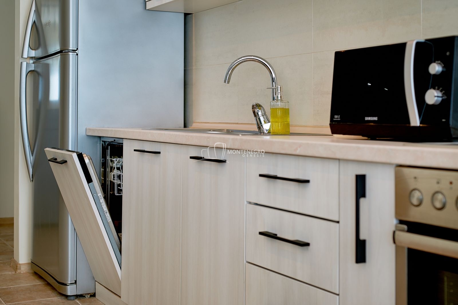 Квартира полностью меблирована, с тщательно подобранной современной мебелью и оборудованием, что позволяет заселиться без дополнительных вложений.